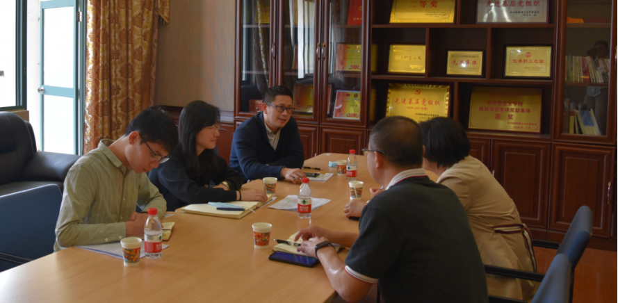 4月6日下午,学校党委常委、统战部部长邱杰等一行莅临太阳成集团122ccvip调研自治区民族团结进步示范区示范单位创建工作情况,学院党委书记耿俊茂、院长梁英陪同并进行了交流汇报。会议具体对学院负责的思政课师资队伍建设、民族团结教育融入思政类课程以及场馆基地建设等问题进行了深入探讨,再次明确了自治区民族团结进步示范区示范单位创建工作的重大意义,学院也就后期配合创建工作统一了思想、提高了认识,对于具体任务有专人负责,压实工作主体责任,并确保工作落实到位,全力共同参与推进自治区民族团结示范区示范单位创建,力争取得明显成效。