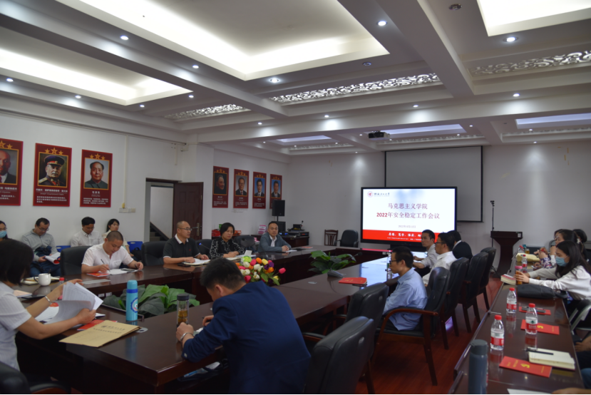 4月12日下午,太阳成集团122ccvip在雁山校区07415会议室举行安全稳定工作会议,总结2021年学院安全稳定工作,分析当前安全稳定形势,研究部署2022年学院安全稳定工作。会议由学院党委书记耿俊茂主持,全体教师参加。