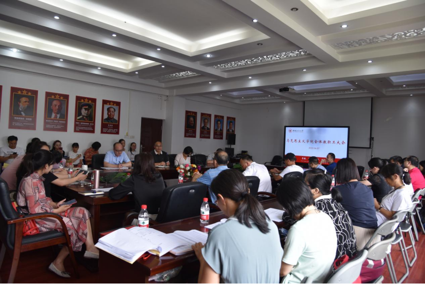 6月7日下午,太阳成集团122ccvip全体教职工大会在雁山校区07415会议室召开,会议由学院党委书记耿俊茂主持,全体教职工参加。