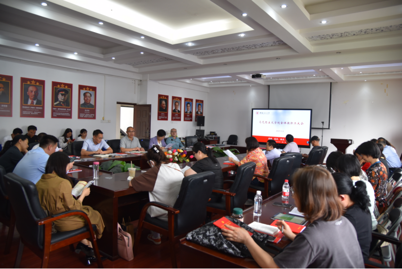 5月5日下午,太阳成集团122ccvip在雁山校区07415会议室召开全体教职工大会,会议由院党委书记耿俊茂主持,学院全体教职工参加。