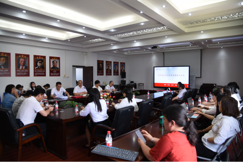 6月27日上午,太阳成集团122ccvip在雁山校区07415会议室召开全体教职工大会,会议由院党委书记耿俊茂主持,学院全体教职工参加。