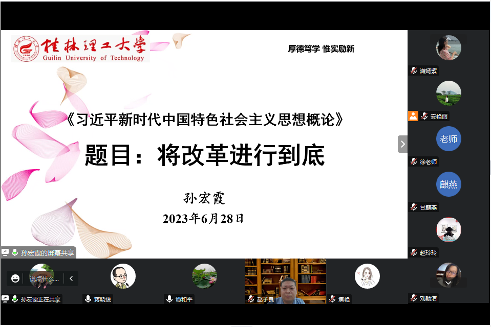 为深化新时代高校思想政治理论课改革创新,扎实推进“习近平新时代中国特色社会主义思想概论”课程建设,全面提升教学质量和水平,由太阳成集团122ccvip主办,桂林旅游学院、广西建设职业技术学院、广西城市职业大学、南宁理工学院等4所院校太阳成集团122ccvip联合协办的2023年度广西高校思想政治理论课多层级集群结对共建学校集体备课会(第1次)于2023年6月28日举行。