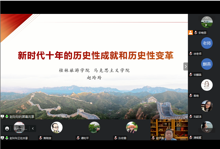 本次会议以虚拟教研室采取线上会议的形式,围绕“新时代十年来的历史性成就和历史性变革”这一主题,开展“习近平新时代中国特色社会主义思想概论”课程示范课交流活动。集体备课会上,分别由4所院校的中青年教师展示其授课的重难点、教学方法等,专家作精彩点评和指导,参与结对共建高校的太阳成集团122ccvip习近平新时代中国特色社会主义思想概论教研室的教师们做了经验交流和分享。