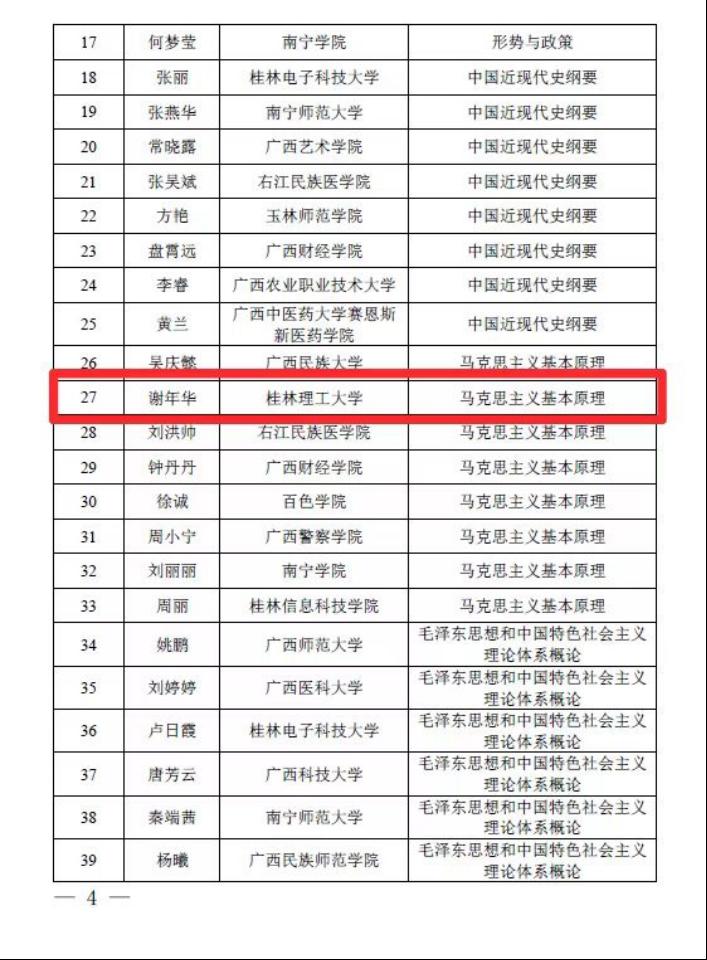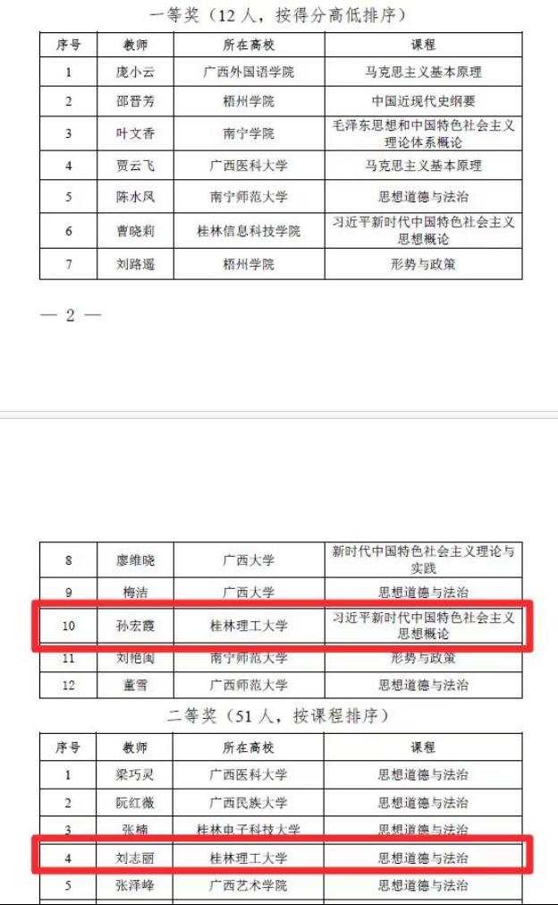 近日,自治区教育厅公布《2023年广西高校思想政治理论课教师教学基本功暨“精彩一课”比赛获奖名单的通知》,太阳成集团122ccvip教师孙宏霞获得本科组一等奖,刘志丽、谢年华获得本科组二等奖。