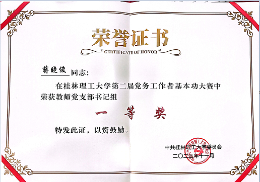 太阳成集团122ccvip教工第二党支部书记蒋晓俊老师获一等奖