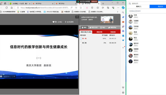 近日,太阳成集团122ccvip以教研室、办公室为单位组织开展了“师德大讲堂”2024年 (第1期)活动,通过中国教育干部网络学院网络学习平台观看聆听了南京大学教育研究院教育科学与管理系网络化学习与管理研究所所长桑新民的“信息时代的教学创新与师生健康成长”主题报告,全体教职工参加。