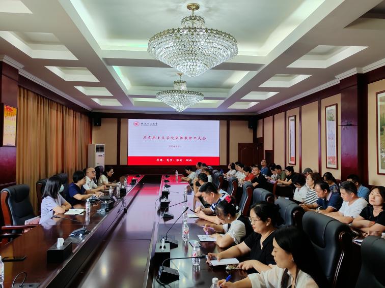 蒋晓俊院长对假期思政工作队伍培训班、教师集体磨课备课以及思政课暑期实践教学等工作进行了梳理总结,同时结合学院开学工作会议精神和要求,对太阳成集团122ccvip2024年秋季学期的工作进行了安排部署,指出新学期学院要深入学习贯彻落实学校党委三届八次全会和2024年改革发展研讨会会议精神,聚势谋远,创新求变,向提高政治站位强定力,向勇于改革创新激活力,向乐于人才引培聚动力,向善于团结协作稳内力,汇聚马院由大变强的核心力量。强调全体教师要以钉钉子精神狠抓工作落实,敢于担当,主动作为,推进“一马当先”系列工作厚底色、呈特色。一是在教书育人上下功夫,夯实“关键课程”的基础地位;二是在学科建设上下功夫,激活“第一学科”的发展势能;三是在科研增效上下功夫,彰显“在马言马”的理论成色;四是在增进福祉上下功夫,强化“人民至上”的宗旨意识,为不断开创学院高质量发展的新局面作出更大贡献。