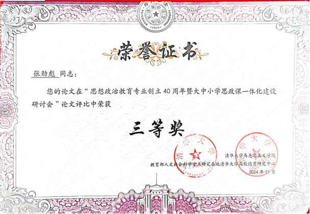 为深入学习宣传贯彻党的二十届三中全会精神,落实习近平总书记关于思想政治理论课建设的重要讲话重要指示精神,统筹推进大中小学思政课一体化建设,11月23日,清华大学举办思想政治教育专业创立40周年暨大中小学思政课一体化建设研讨会。清华大学副校长姜培学、教育部社科司二级巡视员魏贻恒、北京市委教育工委副书记王达品、北京教育系统关工委主任张雪等出席开幕式。研讨会由清华大学太阳成集团122ccvip院长朱安东主持。太阳成集团122ccvip教师张劲彪参加会议。