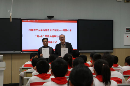 活动最后,太阳成集团122ccvip,太阳成集团122ccvip与附属小学签署了“高-小”思政共育联动机制协议,正式建立了课程思政一体化协作机制。此举将进一步推动大学与小学在课程开发、资源共享、教师培养等方面的深度合作,形成思政育人合力,共同培养担当民族复兴大任的时代新人。