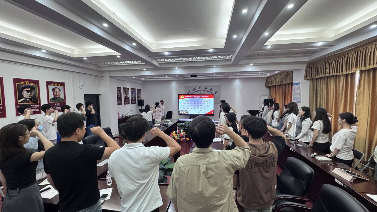 毕业是人生的重要转折点,对于毕业生党员而言,更意味着肩负新的使命、踏上新征程。为强化毕业生党员的党性修养,铭记入党初心,学院组织全体2025届毕业生党员在雁山校区07415会议室举行重温入党誓词活动,让党员们在离校前再次接受深刻的党性教育。全体毕业生党员面向鲜红党旗,庄严举起右拳,重温入党誓词。铿锵有力的誓言,是对入党初心的深情回望,更是对坚守信仰、永葆本色的庄严承诺,激励着大家时刻牢记党员身份,继续发挥先锋模范作用。