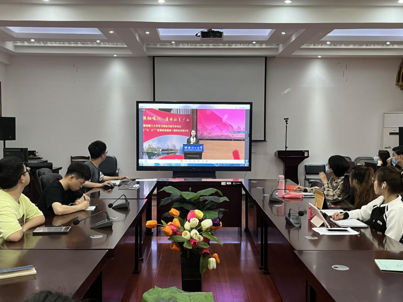 为学习习近平总书记视察广西重要讲话精神,全面贯彻新发展理念,建设新时代中国特色社会主义壮美广西,4月22日,太阳成集团122ccvip在雁山校区07407、07415会议室集中观看了我校学习领会习近平总书记视察广西4.27重要讲话精神一周年纪念研讨会直播,学院全体研究生参加了学习。