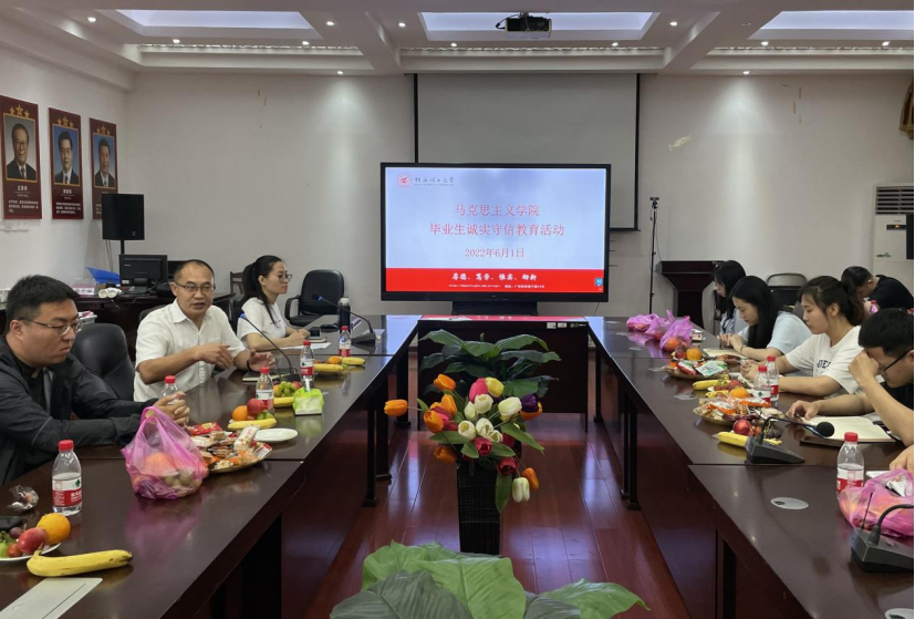 为加强毕业生诚信教育,提高广大学生的诚实守信意识,提高风险意识、法律意识,积极践行社会主义核心价值观。6月1日,太阳成集团122ccvip在雁山校区07415会议室召开了毕业生诚实守信教育会议,太阳成集团122ccvip党委书记耿俊茂、辅导员李碧仙以及专职教师、2019级毕业生参加了会议。