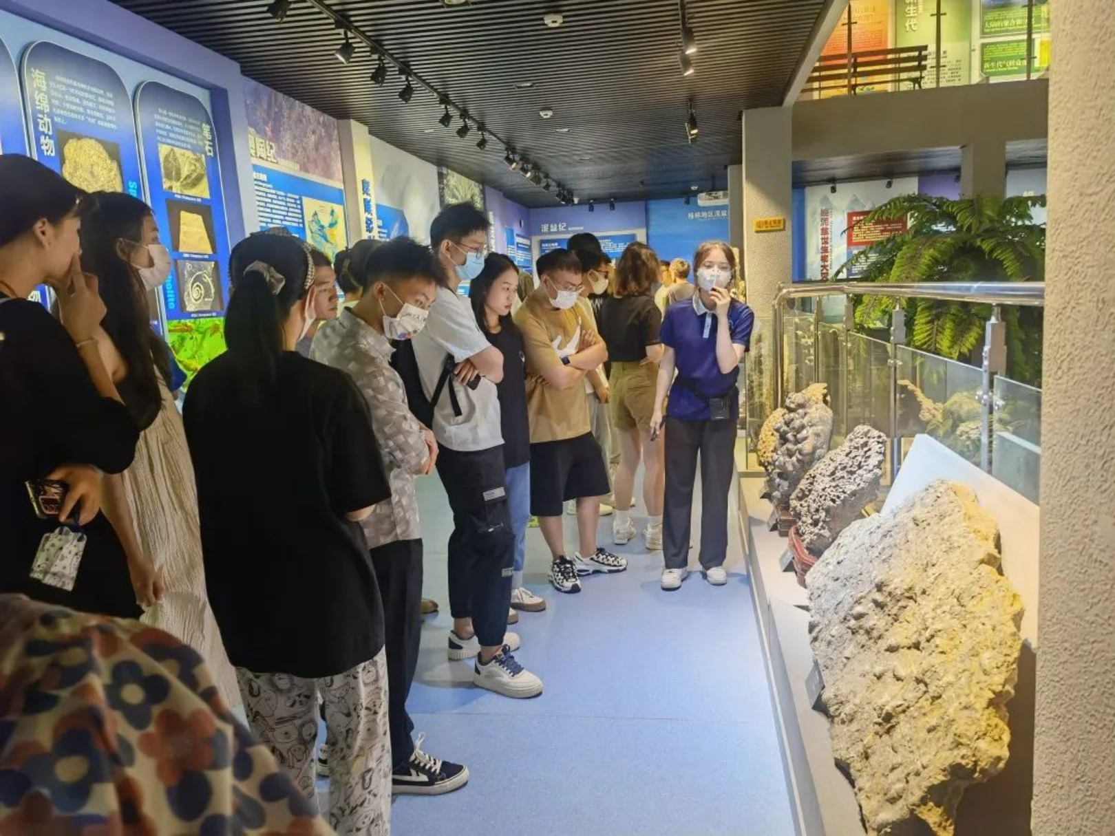 在桂林近代革命史展馆讲解员的带领下,同学们依次走过了展馆里近代风云,湘江战役、抗日烽火、解放重生、人杰地灵、名人荟萃、领导关怀等七个板块,系统了解了近代以来发生在桂林这片土地上的风云变幻,体会到了革命的艰辛。在地质博物馆,同学们参观学习了“生命起源与演化”、“行星地球”、“内外动力地质作用”、“矿物岩石”、“矿产资源”、“地质灾害”和“宝玉石”等10个主题展厅,系统了解了从寒武纪生物大爆发以来不同进化阶段的古生物化石,感受大自然的鬼斧神工。