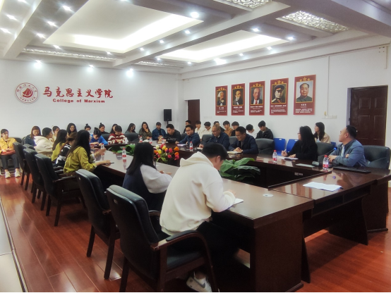 为持续深入学习贯彻落实习近平总书记在学校思想政治理论课教师座谈会上的重要讲话精神,回顾总结学院在思政课改革创新中的成果和经验,进一步推动思政课高质量发展,在习近平总书记“3·18”重要讲话发表四周年之际,学院组织全体师生在07415会议室重温习近平总书记“3·18”重要讲话精神,会议由学院党委副书记叶大相主持,学院党委书记耿俊茂老师出席会议并讲话,学院教师饶筠筠、陆朝森和部分研究生代表作交流发言。
