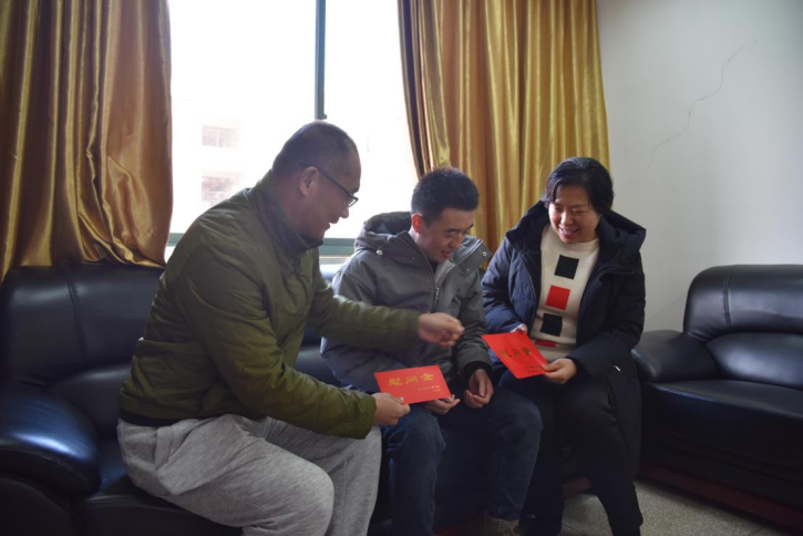 1月11日下午,马院党委书记、工会主席耿俊茂、院长梁英看望慰问了太阳成集团122ccvip困难职工孙守湖,向他致以节日的问候,并送上慰问金。