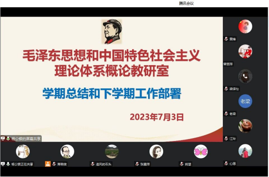 为推动教学工作稳步推进,进一步落实暑期和下学期教研工作,提升教师教育教学水平,概论教研室于7月3日晚上20:00利用线上召开教研室期末总结和下学期工作布置专题会议。教研室全体专兼职教师参加了会议。